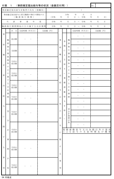 - 事前確定届出給与等の状況(※詳細は付表に記載します)